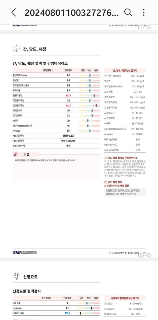 요새 피부염이 생겨서 건강검진 결과지를 보는데