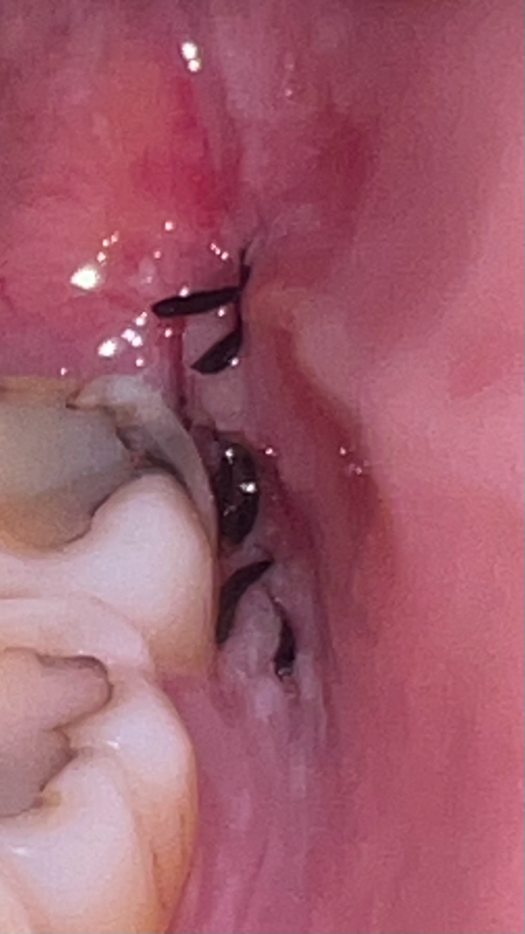 사랑니를 뽑고 나서는 잇몸이 부어 잇고 시간이 지나면서 잇몸 붓기가 빠지게되면 실밥이 약간 헐렁거릴수도 잇습니다.