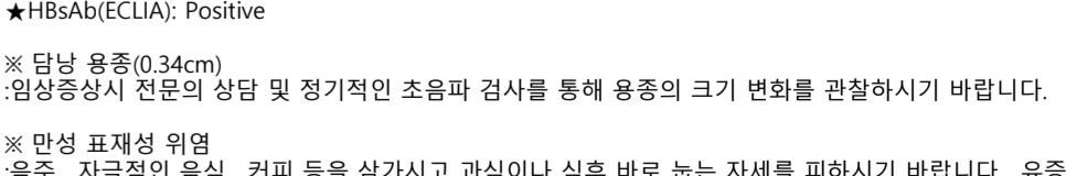 다행히 관찰된 담낭 용종의 크기가 크진 않기 때문에 6개월 후 다시 검사를 받아보고 크기 변화가 없다면 매년 추적 초음파 검사를 받아 볼 것을 권합니다.
