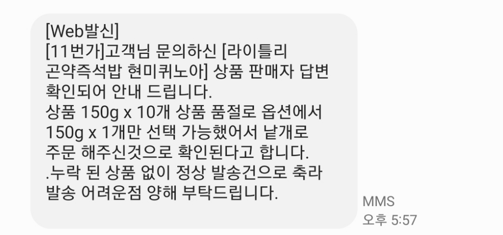 위와같은 상황을 설명하니 상담원은 판매자에게 확인해본다고 말하며 채팅을 종료했습니다.
