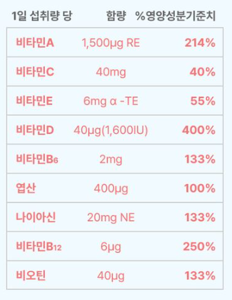 알약으로 복용하는 비타민이 아닌 젤리형태의 비타민이다보니 구체적인 설명이 없고 '영양성분기준치'만 나와있더라고요.