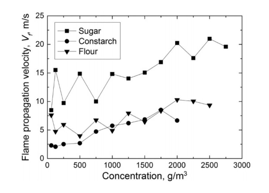 설탕이 옥수수전분, 밀가루에 비해 화염전파속도가 2배 높다는 연구 결과를 봤습니다. 왜 설탕의 화염전파속도가 더 빠른가요? 혹은 왜 설탕이 더 잘 타나요?