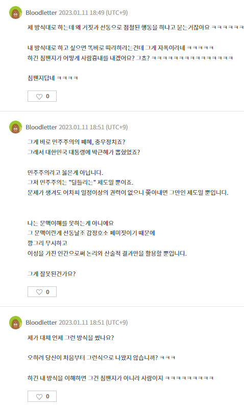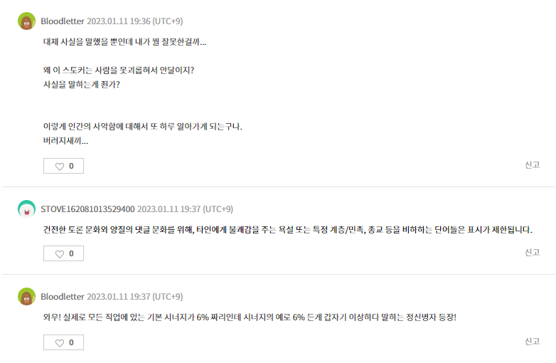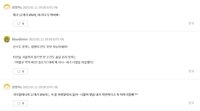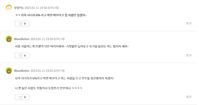 공식 홈페이지에 신고는 계속 넣고 있었는데 댓글 삭제만 하고 제제를 가하지 않네요.