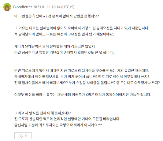 로스트아크 공식 홈페이지 커뮤니티에 쓴 글입니다.