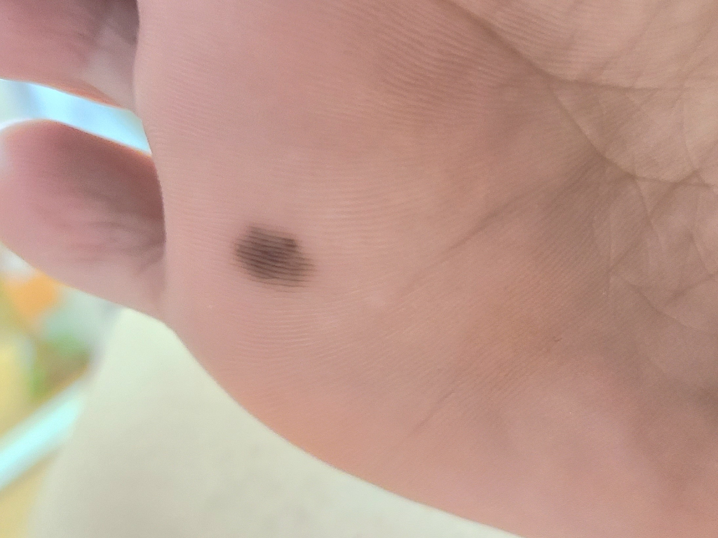 작은점은 작년쯤에 생겼는데 역시 아주 작다가 지금은 2mm정도로 커졌어요. 위치는 발꿈치 위쪽 움푹 파인 부분으로 큰점이랑은 좀 떨어져있어요.