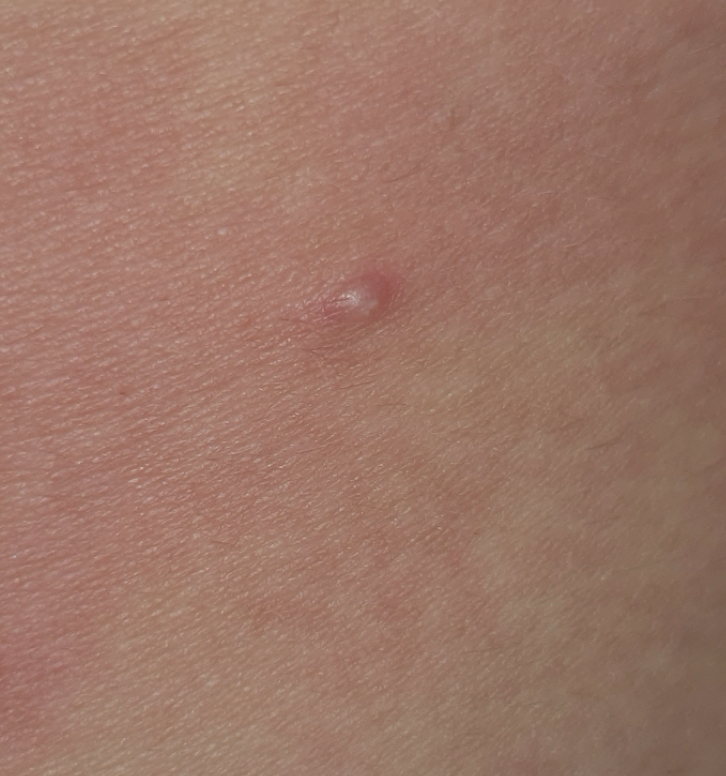 단수수포같습니다. 자쑤 긁거나 비비면 근처에 또 생길수가있습니다. 멸균 주사침으로 터트려볼수있겠으나 근처 의원진료보는게좋겠습니다.