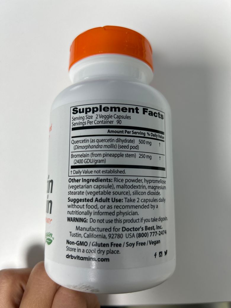 브로멜라인이 퀘르세틴의 흡수 증가를 온전히 유도하기 위해서는 공복이 좋습니다.