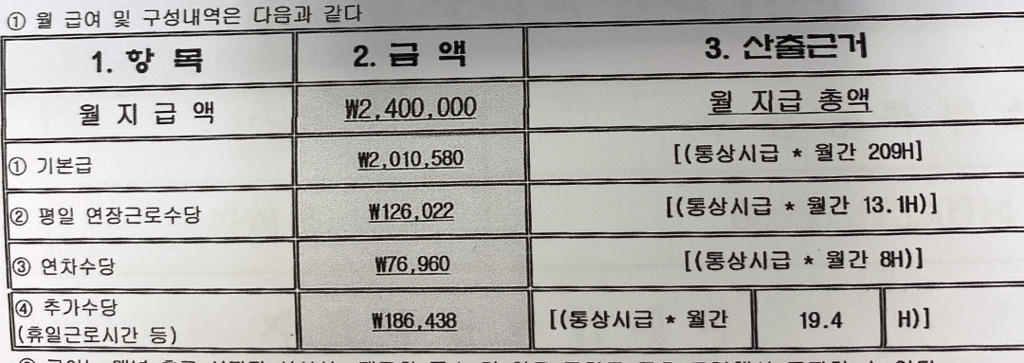 실근무 7시간 기준 기본급 제대로 책정된 것으로 보이고,