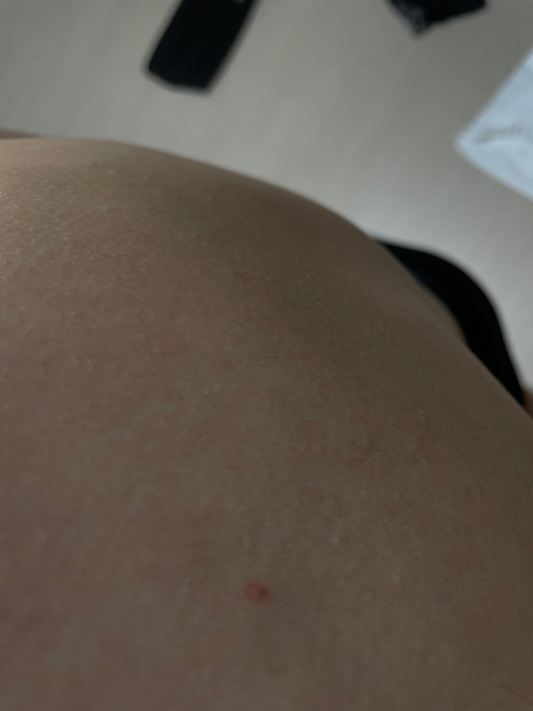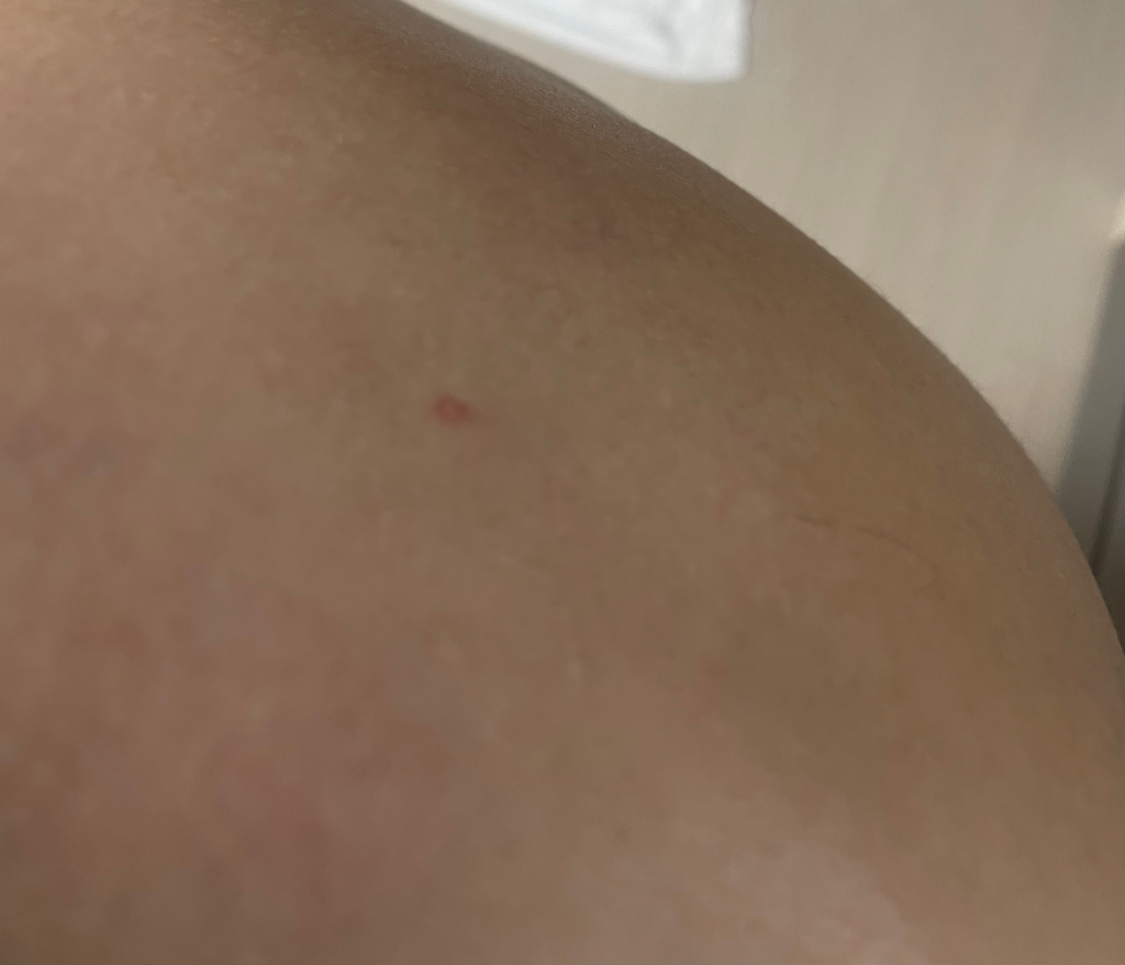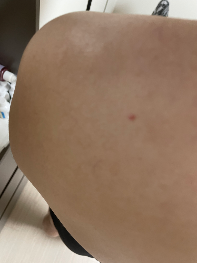어깨 병변은 아직 감염이 동반되어 있는것 같은 모습은 보이지 않습니다.