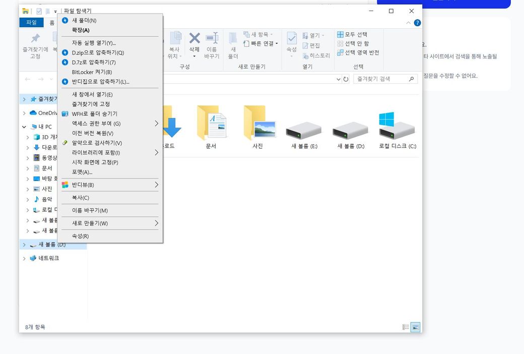 어느 순간 파일 탐색기에 새 볼륨 (D:) 파일이 표시되는데요,