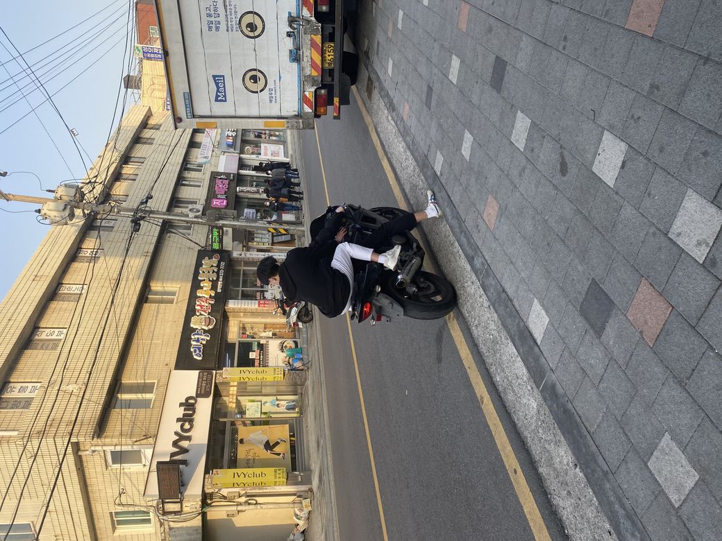 혹시 저 오토바이를 그대로 타고 가나 해서 지켜보고 있었으나 정말 그 오토바이를 타고 가려고 하길래 사진 몇장을 찍어 두었습니다.