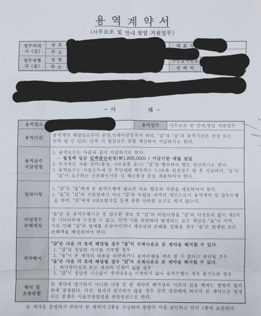 알바를 시작했는데, 처음 보는 계약서입니다..