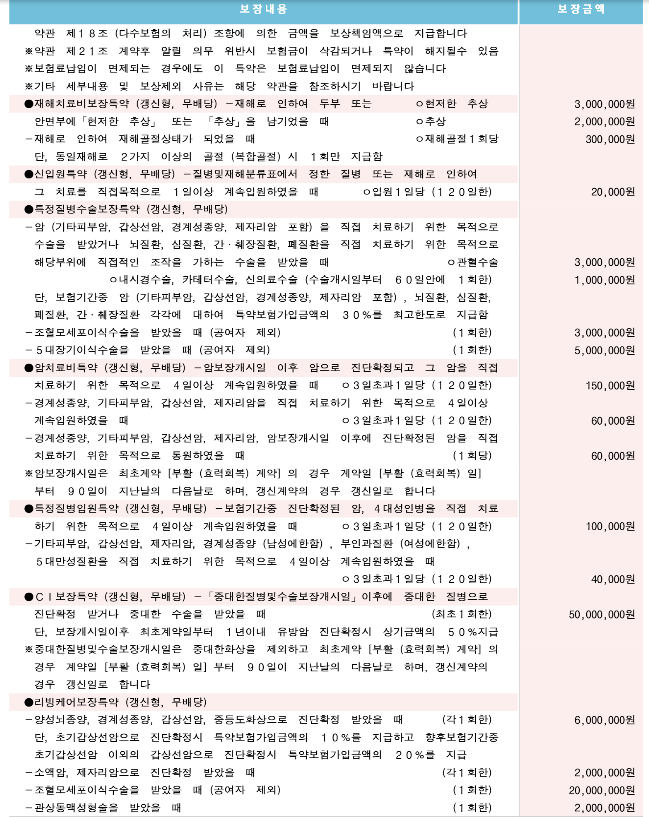 CI보장, 특정질병입원, 리빙케어, 특정질병수술, 뺑소니 지금 보이는 건 이 다섯가지 이구요.