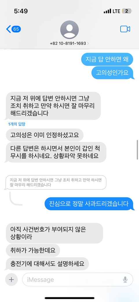 그분입장은 자기가 받아줘야지 그게 사과라며 필요없다고 하시고 합의금을 기속 요규 합니다