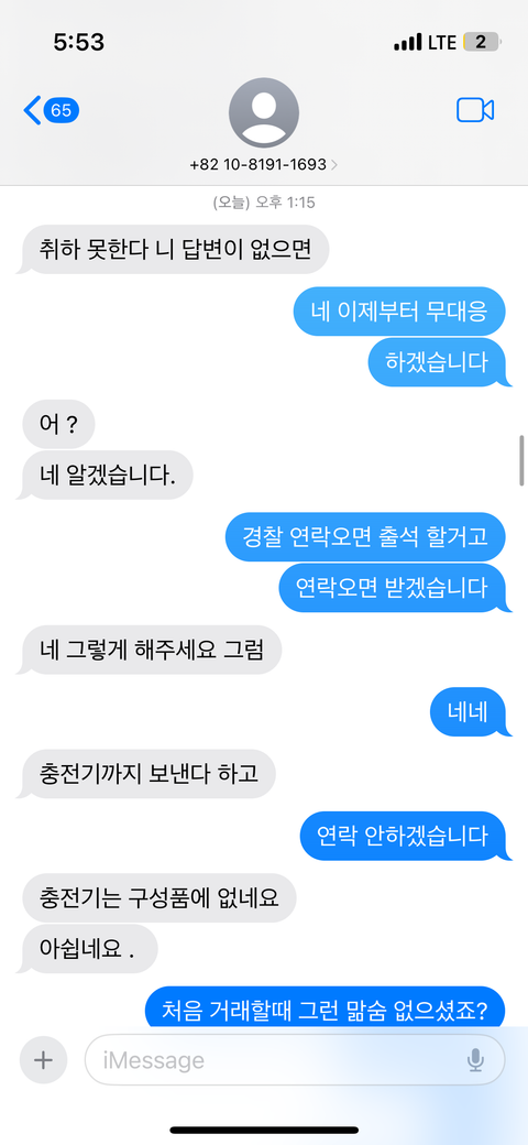 그리고 제가 그냥 경찰서 가서 진술하갰다고 이제부터 무대응 하겠다하니 뭔 무대응이냐고 그게 말이되냐고 무대응 하면 뭐 고소를 진짜 취하를 안해주겠다느니 고소 절차를 더 밟게 다더니 일이 더 커진 다느니 같은 말을 하며