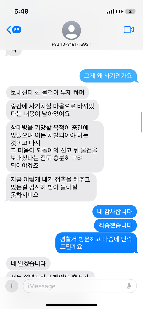 근디 폰 꺼져서 연락안되는 그 십분정도가 제가 보조배터리를 사서 연락을 다시 햤는데 그 사이 잠수를 탄거다라고 이건 사기 칠려는 거다 몰아가서