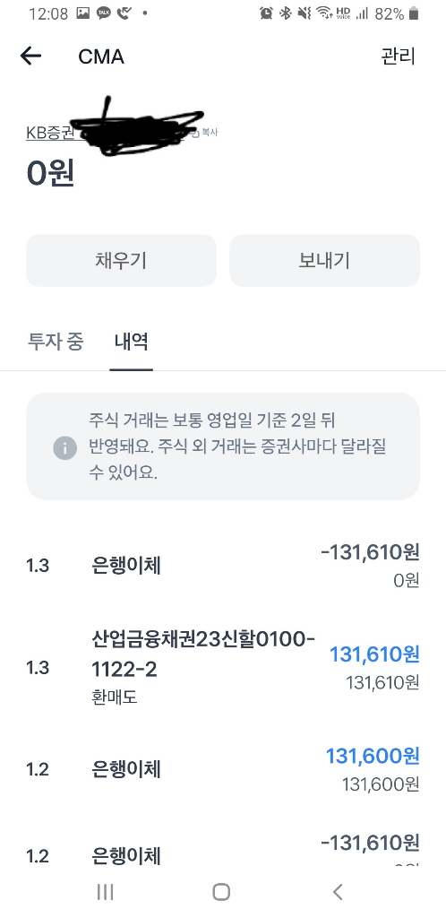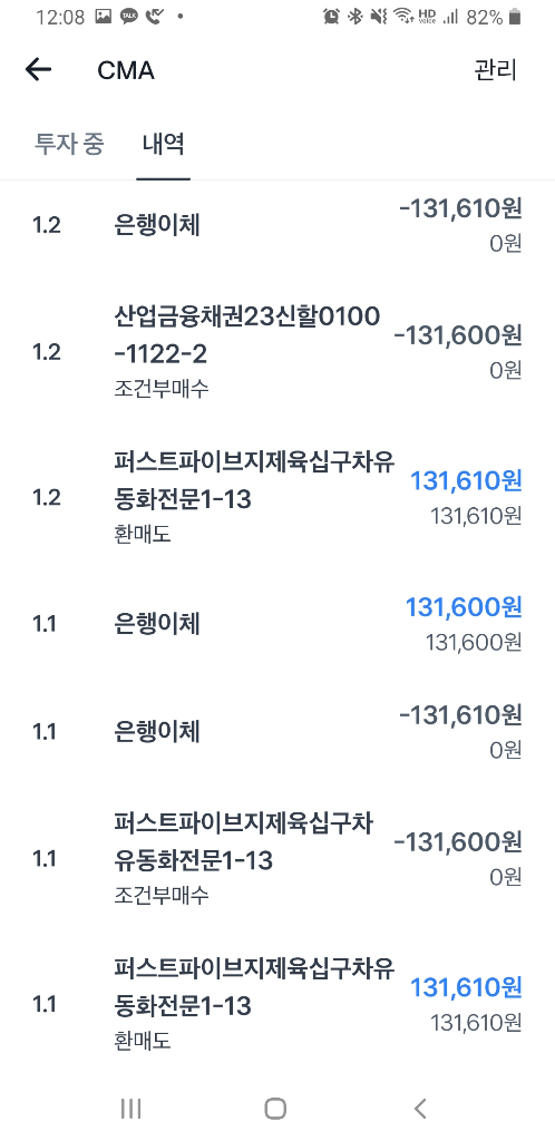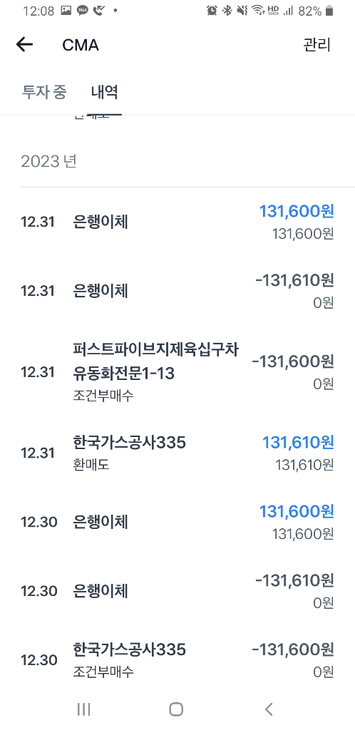 Q1. 이 어찌된 일? 저는 cma 계좌에 돈을 넣어놓은적이 없는데 왜 혼자서 매수매도를 반복하는 것인가요. 그리고 왜 금액은 하필 131,600(131,610)인 것이며 2월8일부터 1월3일까지만 진행이 된 것인가요?