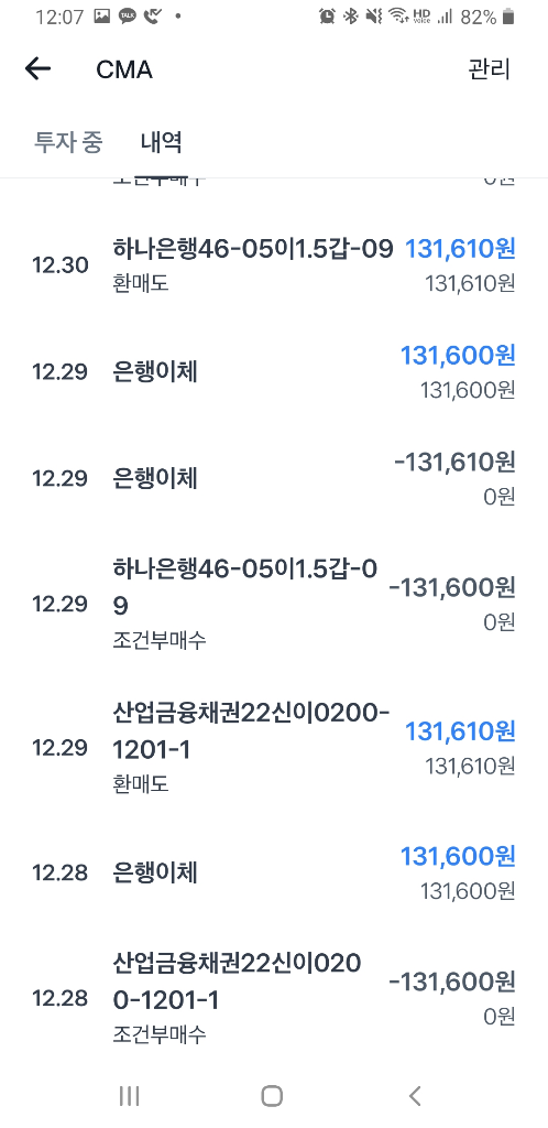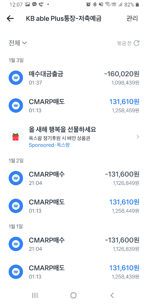 2. cma계좌에 돈을 넣은 적이 없는데 12월28일 부터 1월3일까지 cmarp 매수- 131,600