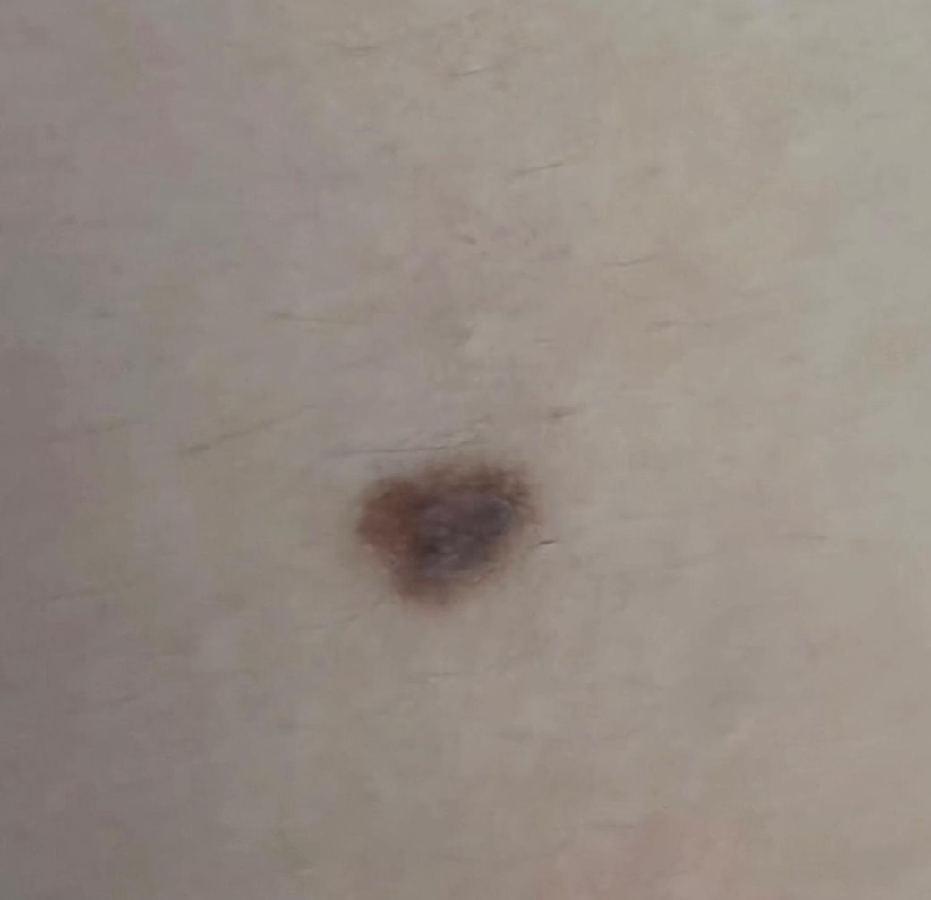 올려주신 사진상 경계가 비교적 명확하며 색조 혼조가 관찰되지 않아 흑색종 가능성은 낮을 것으로 판단됩니다. 흑색종은 불규칙한 경계,색조의 혼조,표면의 결절성 변화 등으로 나타나는 경우가 많은데 이러한 소견이 관찰되지 않기 때문입니다. 하지만 이러한 특징적인 소견이 없더라도 이전에 비해 점의 크기나 모양이 변화하였을 경우에는 조직검사를 고려해 볼 수 있습니다. 따라서 이전에 비해 크기나 모양의 변화가 있거나 걱정이 되신다면 피부과 내원하여 진료를 보시는 것을 권해드립니다.