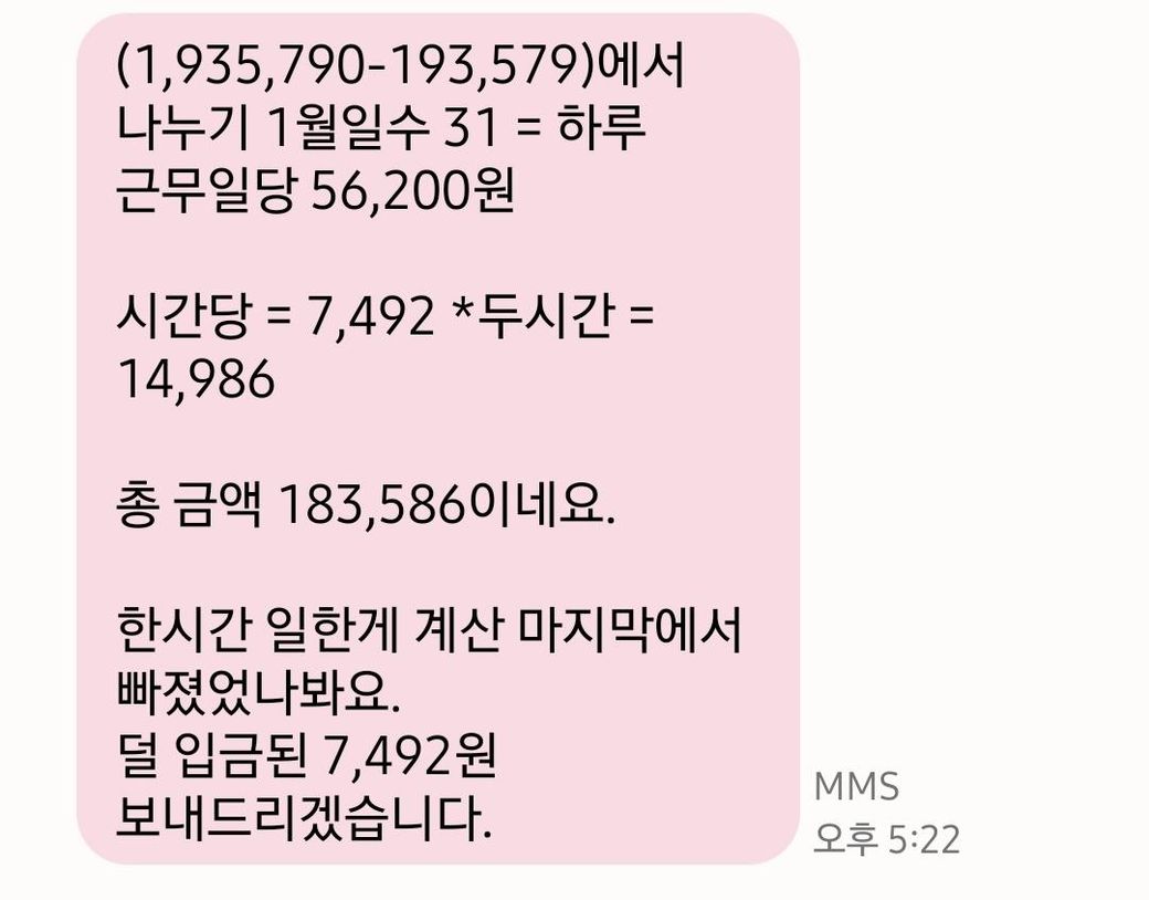 4일 알바 후 그만 둔 곳에서 돈이 왔는데