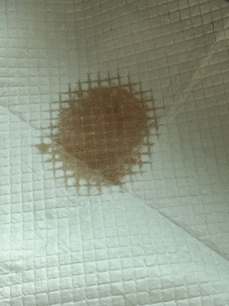 안녕하세요. 박창민 수의사입니다. 일단 스트레스성의 가능성도 충분히 있고 첫 소변은 일반적으로 진뇨입니다. 약간 붉은끼가 있는 건 맞으나 패드에 흡수가 되어 평가하기가 애매합니다. 감사합니다. 기타 특이사항이 없으면 일단 조금 더 지켜보시는 게 좋을 가 같습니다. 감사합니다.