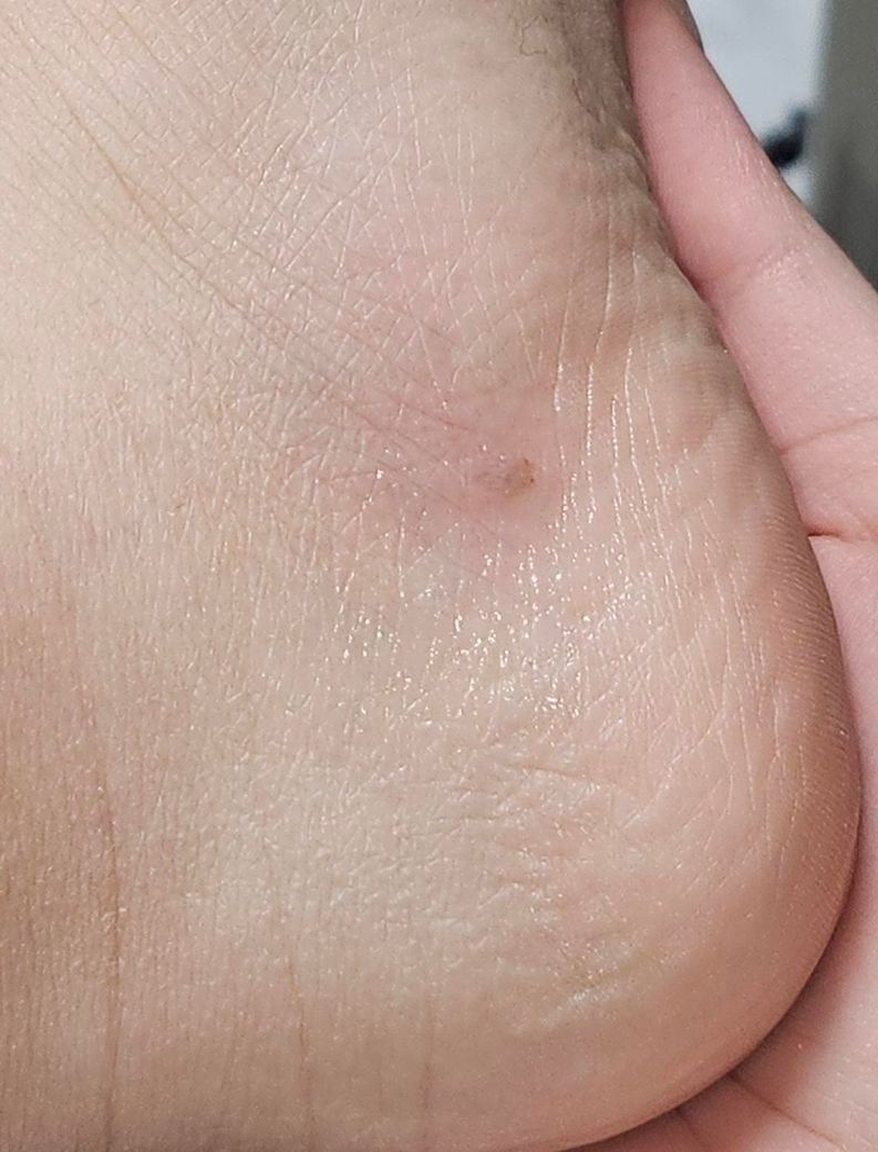 발뒤꿈치 옆쪽에 점같이 얼룩?이생기고 중심부는 살짝 까만데 점인가요? 손으로 만져보면 미세하게 튀어나와서 손톱깎이등으로 잘라보니 껍질?이나 굳은살같이 나오는데 그래도 점같은 사라지지않고 그대로 있어요.