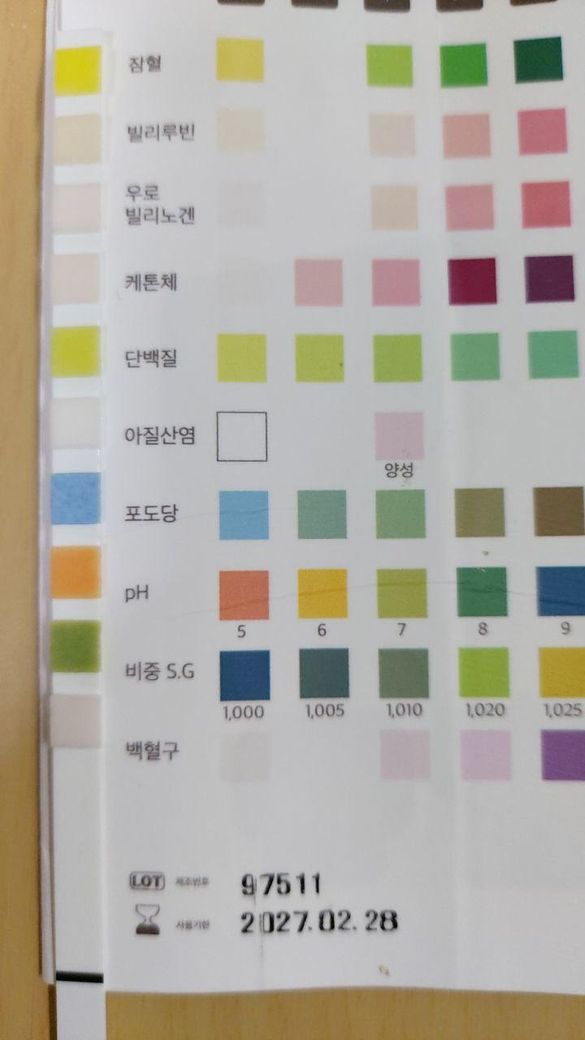 한 달 동안 소변 스틱으로 소변 검사를 진행한 사진을 올립니다. 선생님들의 조언 부탁드립니다.
