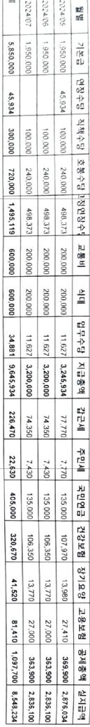 또한 교통비항목 20만원도 꾸준히 들어온것을 보니 비과세 한도만큼 지급한 것으로 판단됩니다 둘다 최대 20만원까지 비과세 가능한 항목이니 참고 바랍니다