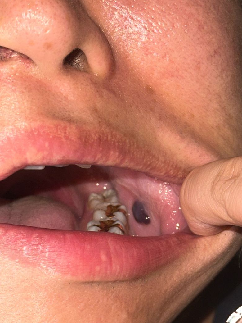 적어주신 내용과 올려주신 사진으로 미루어 입안 점막을 씹어 생긴이 상처로 인해 피가 고여 생긴 혈종으로 파열 시 출혈이 생길 수 있습니다.
