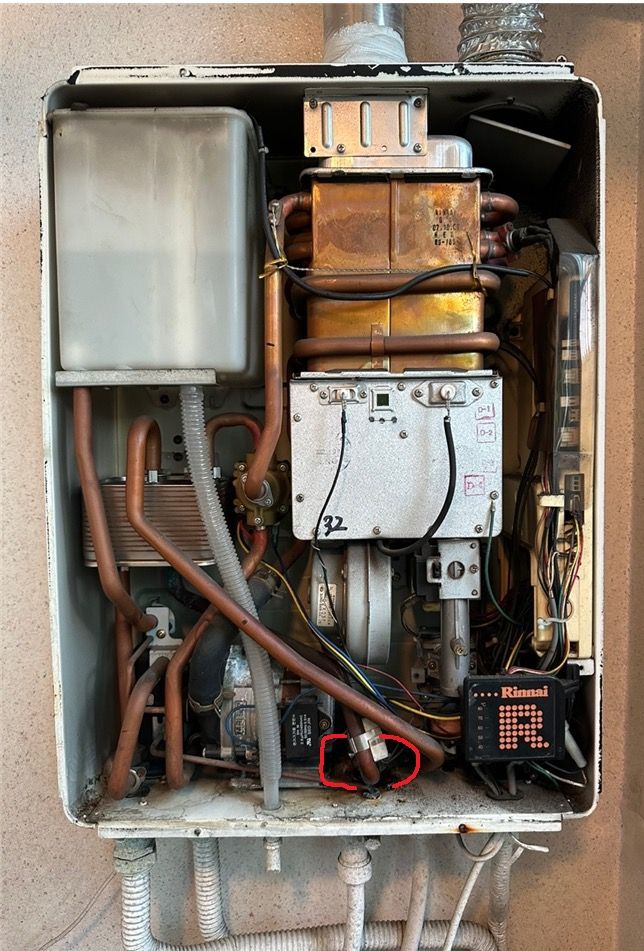 린나이 보일러(RB-165CKF) 물이 샙니다. 이 부품 구할수 있을까요?? 아니면 조치 방법 이라도 알려주세요.!? 물이 똑똑 떨어집니다..!?