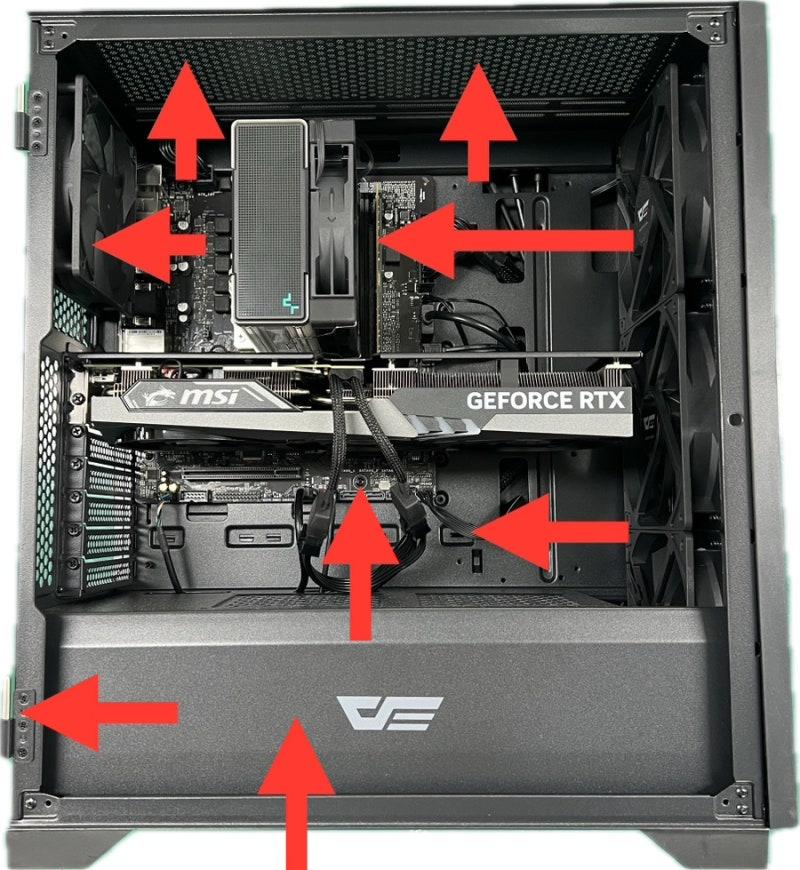 쿨러의 바람 방향은 이런식으로 들어갔다가 나와야 해요.