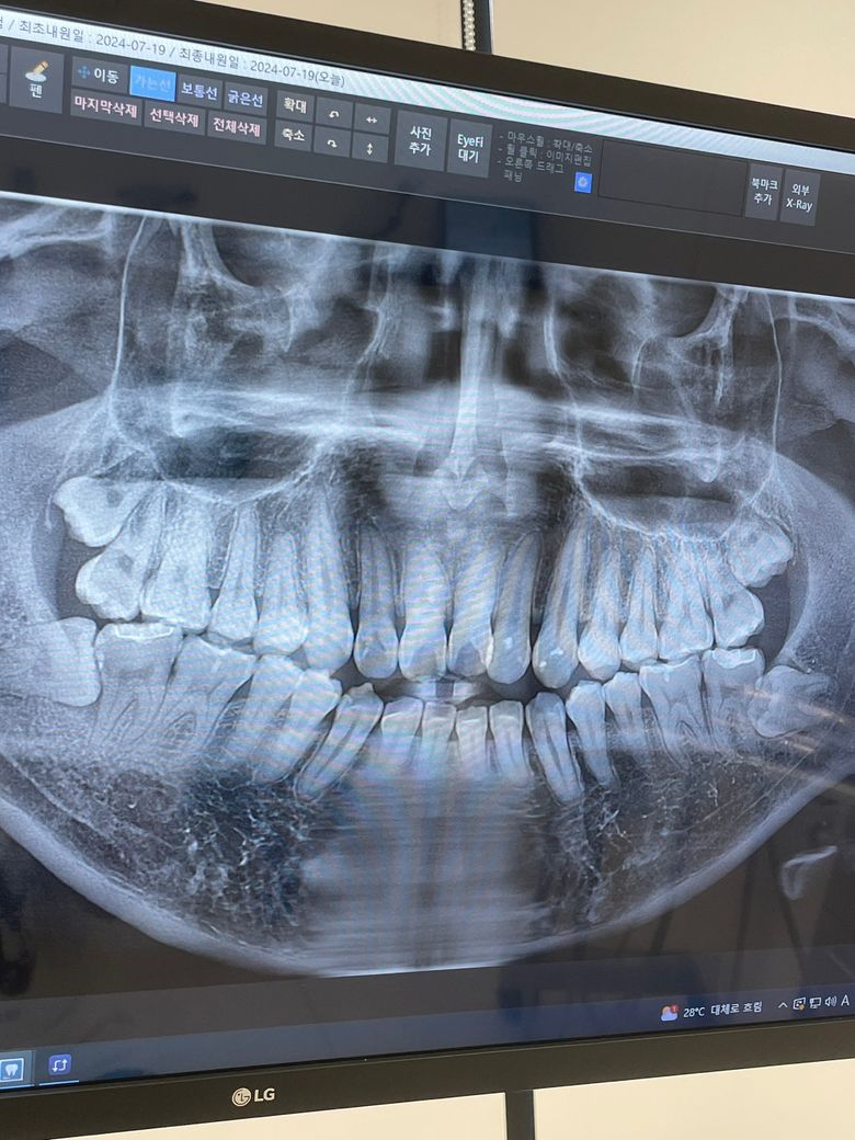 군 입대 전 치아의 머리가 나와있는 사랑니는 뽑았고 아직 사진상 오른쪽 사랑니는 뽑지 않았습니다. 가끔 욱신거리는 통증이 있긴 한데 일상생활에 지장도 없고 군대에 있는지라 발치가 어려운데 이제 전역을 앞두고 두달정도 휴가를 나가서 발치하려고 합니다. 휴가가 6월쯤 되는데 사진상으로 봤을때 어금니에 문제가 생겼을 가능성이 있을까요…? 양치는 꼼꼼히 하고 자기 전에는 무조건 했습니다. 식사 후에도 되도록이면 했구요…