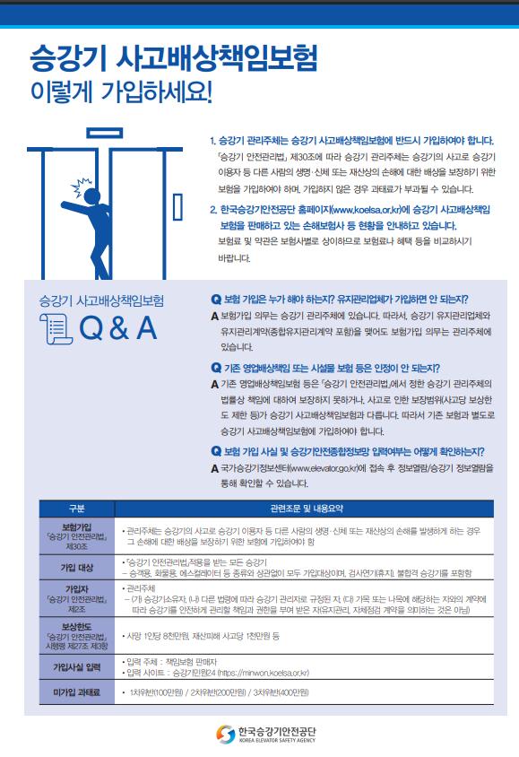 승강기보험은 1년 단위로 가입해야하며 1년 소멸성 보험입니다,