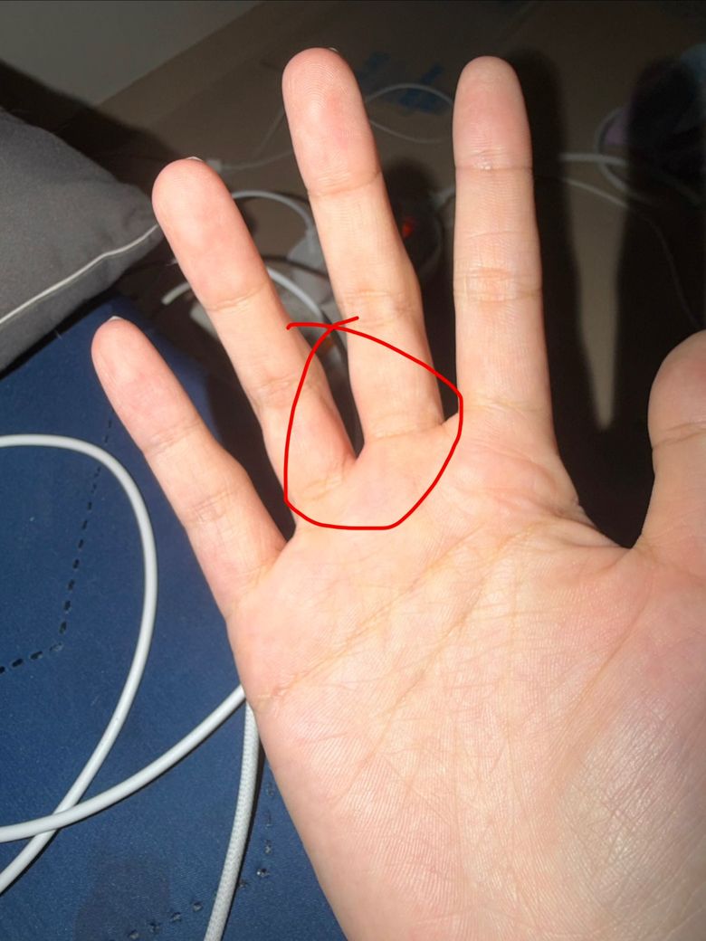 사진에서 표시된 부위는 손바닥 쪽 3–4번째 손가락 사이로, 수지 신경이 지나가는 구간입니다. 말씀하신 것처럼 가만히 있어도 지속적으로 아프고 신경통처럼 느껴지는 경우는 단순 근육통보다는 신경 자극 또는 압박에 의한 통증 양상일 가능성이 높습니다. 도수치료 과정에서 어깨와 팔, 손으로 이어지는 신경이 과도하게 늘어나거나 눌리면서 일시적으로 신경이 예민해진 상태로 볼 수 있습니다.