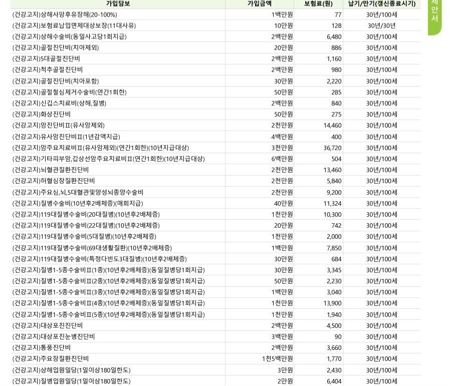 모든 보험을 비갱신형으로 설정하면 위와 같이 부담스러운 보험료가 될 수 있습니다.