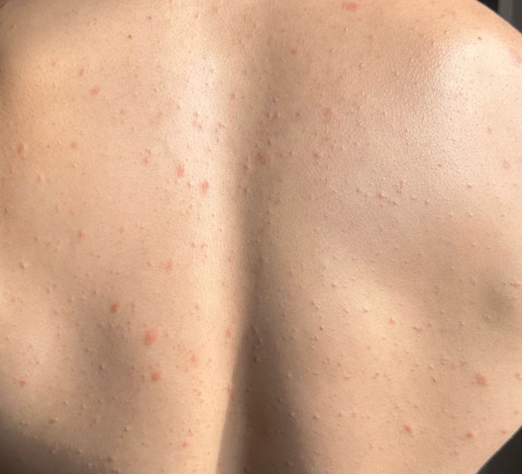 발진만 보고 원인을 알 수는 없습니다. 꽃가루 알레르기든 땅콩 알레르기든 똑같이 발진을 일으킬 수 있는 것과 같습니다. 어차피 치료는 처음에 항히스타민을 투여하는 것으로 같습니다. 원인 파악은 MAST 검사와 같은 것을 해야 유추가 가능합니다. 참고하시기 바랍니다.