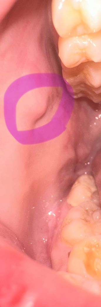 사진과 같이 양쪽 볼 옆에 볼록 튀어나와있어요!! 위치는 비슷한것 같아요~