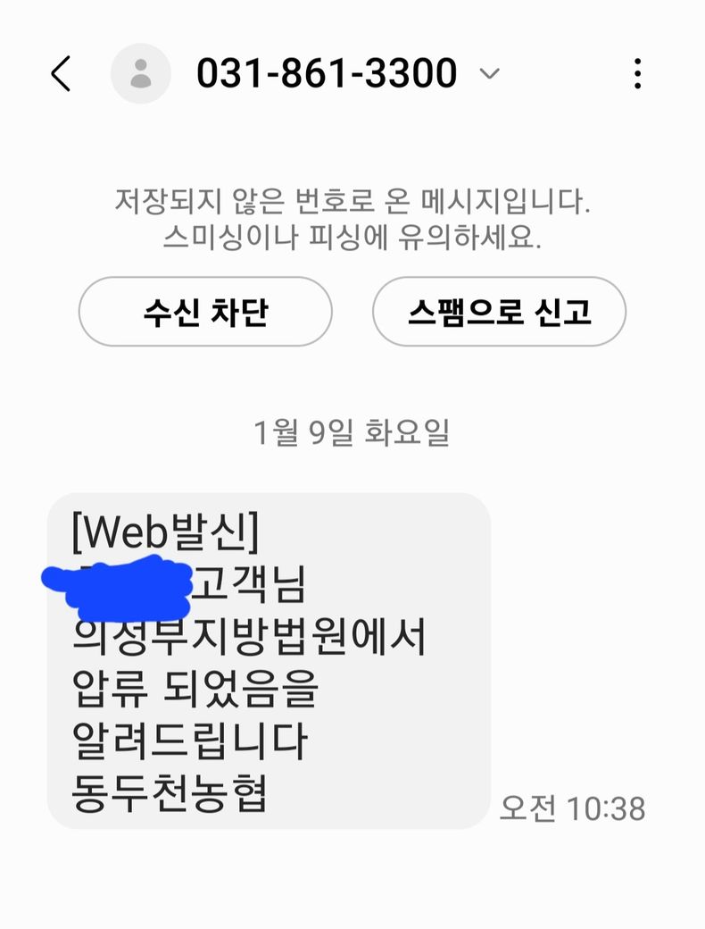 오늘 갑자기 농협에서 통장이 압류되었다고 문자가 왔습니다.