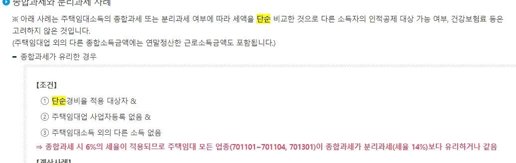 세무서 사례인데, 주택임대업 사업자등록이 없을 때만 단순경비율로 신고가 가능하다는 말인지도 궁금합니다