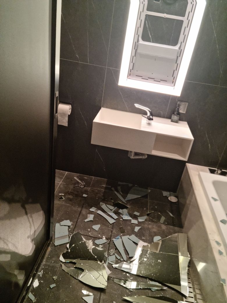 호텔 투숙중 욕실 거울이 깨졌습니다. 호텔 화장실에서 간이 문을 닫고 볼일을 보던 중, 갑자기 세면대 위의 거울이 떨어지면서 완전히 박살이 났고, 저는 해당 상황을 사진을 찍고, 즉시 직원을 불렀습니다. 남성 직원이 올라와 욕실 세면대 위 거울이 깨진 것을 살펴보고 방을 바꿔주겠다고만 하고 고객이 다쳤는지 아닌지에 대해 전혀 물어보지도 않았습니다. 다행히 저는 깨진 유리가 발등을 스쳐 발등만 살짝 다친 정도입니다. 방을 바꿀까하다 함께 온 일행이 술에 취해 먼저 자고 있었기 때문에 방을 안 바꾸고 그대로 쓰겠다고 했습니다.