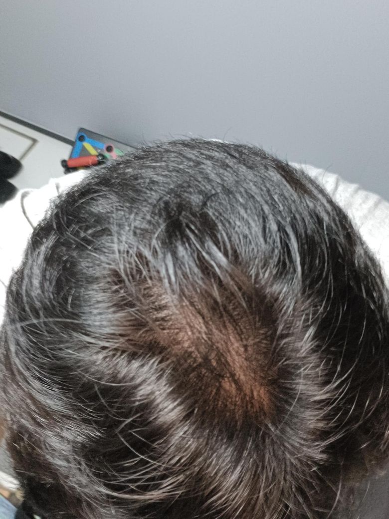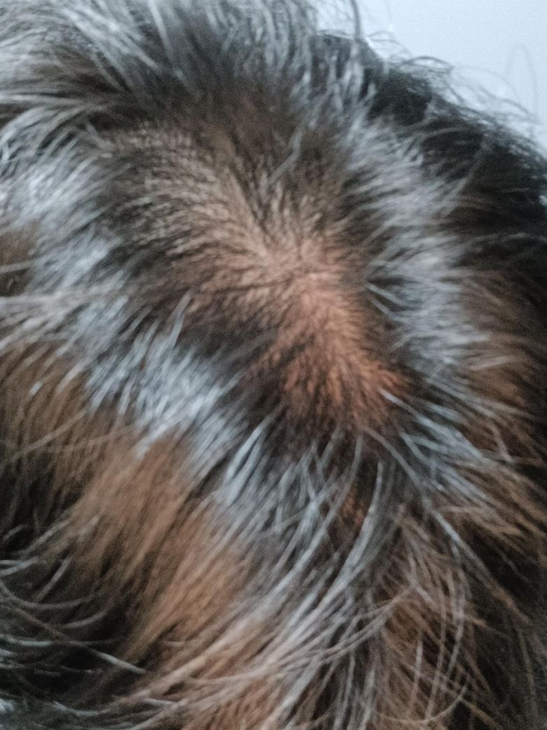 사진상에서는 탈모의 가능성도 있어보이긴 하나, 명료하게 평가하기 위해서는 대면진료 필요합니다.