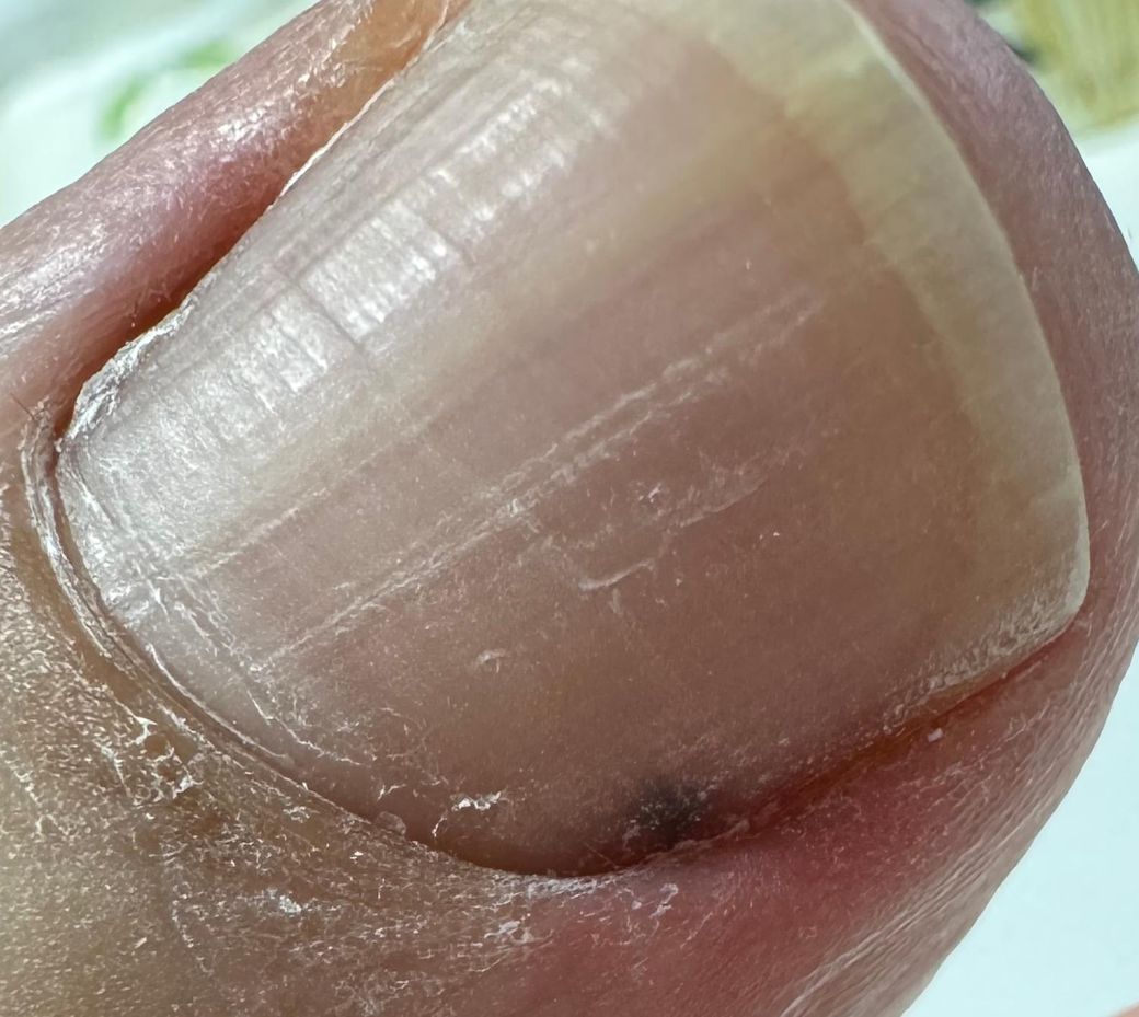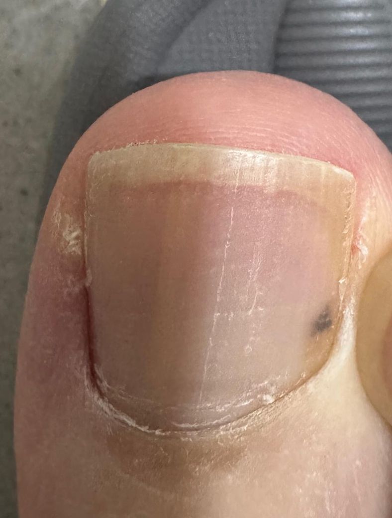오른쪽 엄지발가락 발톱 아래에 검은 멍같은게 보여요