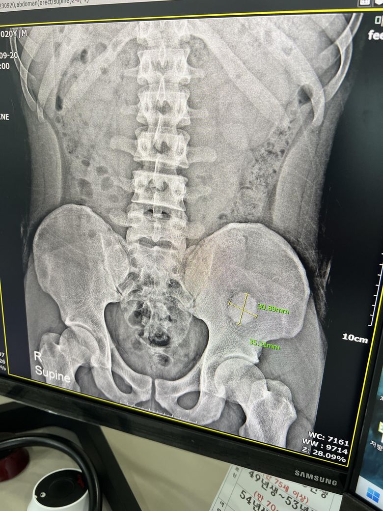 우연히 엑스레이를 찍다 골반에서 뭐가 발견됐습니다