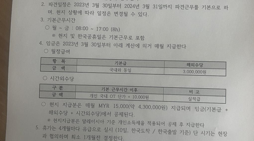 해외파견 근무시 휴일 수당지급 및 연차휴가