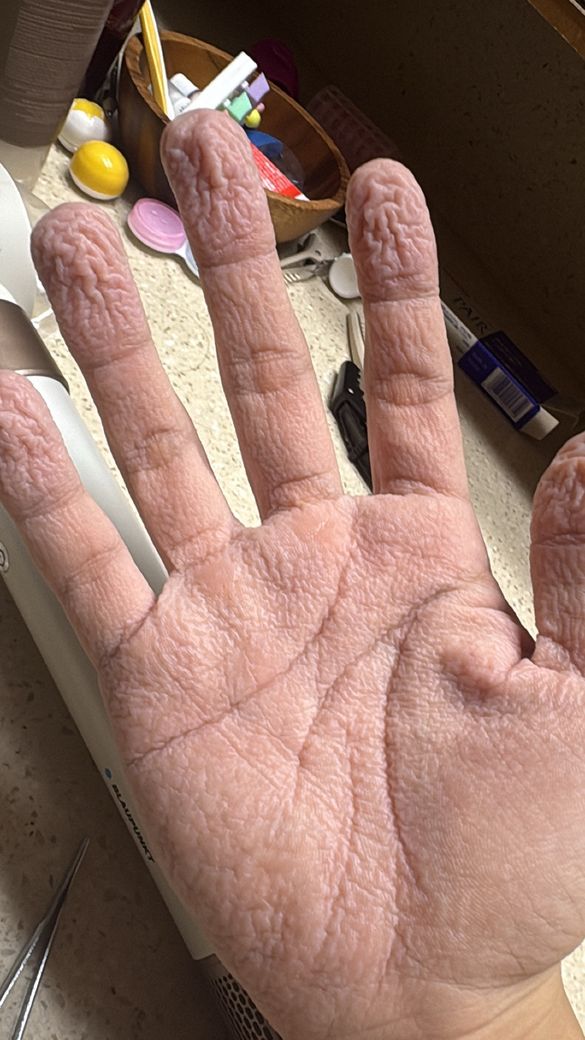 다만 평소에도 손이 건조하고 갈라지거나, 물에 닿지 않아도 주름이 심해 보이고 피부가 얇아진 느낌이 있다면 단순 건조 피부나 피부 장벽 약화일 수 있어 보습 관리가 필요합니다. 그렇지 않고 물에 닿았을 때만 일시적으로 생겼다가 마르면 돌아온다면 정상 범위로 보시면 됩니다.