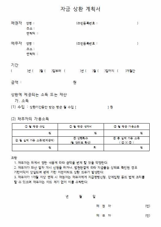지금 거의 1년이 넘어가고 있기에 사실 소송으로 넘어가려다 마지막으로 한번 지켜보자 라는 취지에서 자금상황계획서를 작성 시켜보려 합니다.