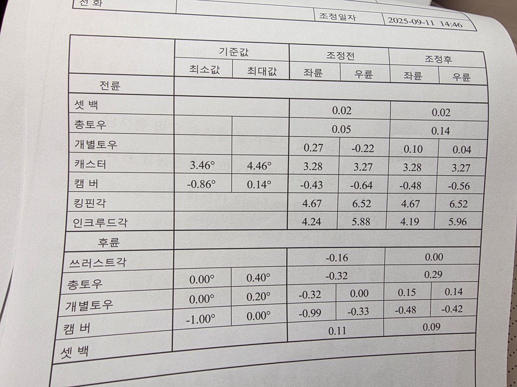 하체수리후 얼라이먼트 했는데..