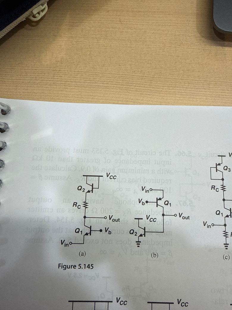 (a)와 (b)의 전압 이득을 구하려고 할 때 (a)의 Q2는 에미터에서 바라본 저항이니 1/g_m으로 대체하고, (b)에서 Q2는 베이스에서 바라본 저항인 r_pi로 대체하는게 아닌가요? (a)의 Q2의 베이스가 V_cc에 연결되어있어 다른 상황인가요?