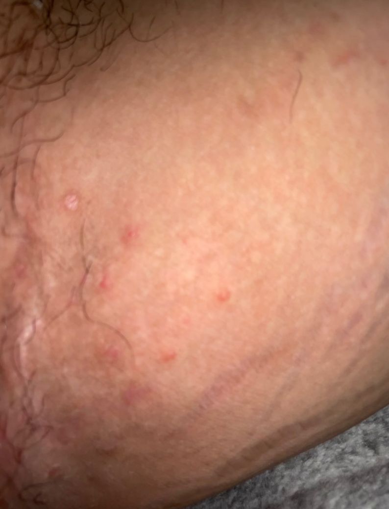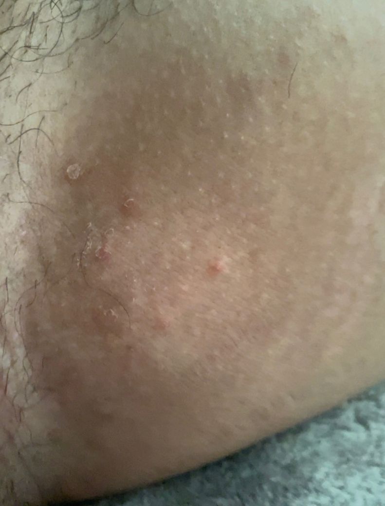 약 1주 전부터 수면 중에 간지러워서 긁었더니 기억이 있는데, 어제까지만 해도 볼록하지는 않았고, 원형으로 피부가 까진 흔적들만 있었는데, 오늘은 자고 일어나니 볼록하게 튀어나와 있네요. 그냥 날이 더워져서 생기는 땀띠나 그런 건줄 알았는데, 관련해서 찾아보니 매독, 성병 관련 정보도 나와서 질문 드립니다