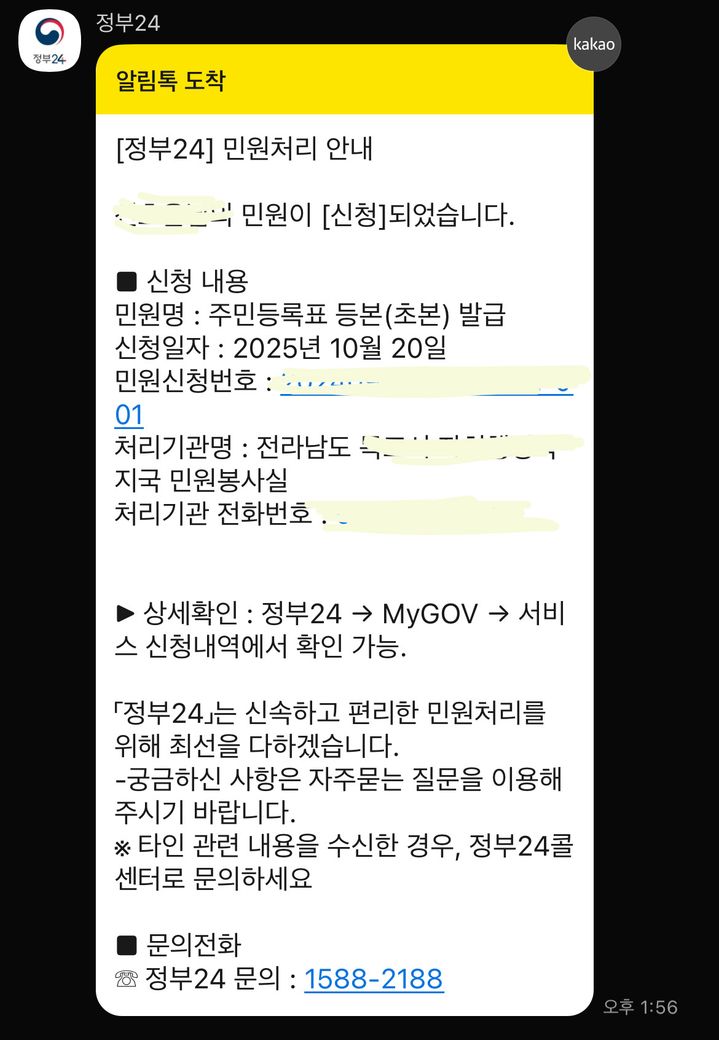 일단 정부 24들어가서 서비스 신청내역 확인해봤는데